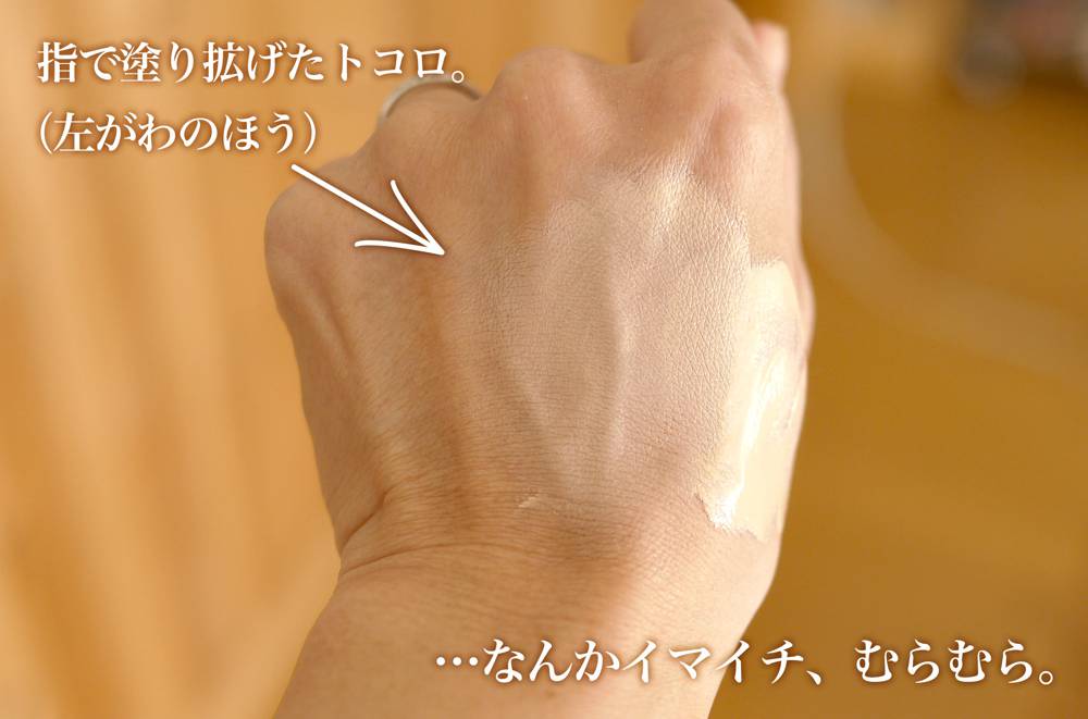 最初は手で塗りひろげてメイクしてみた